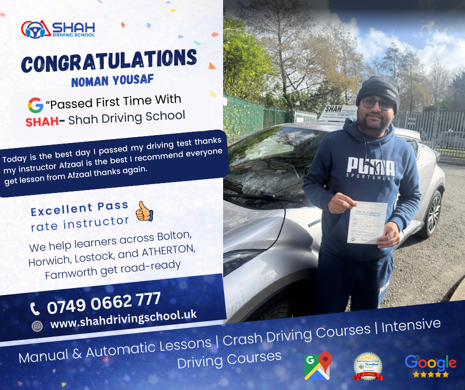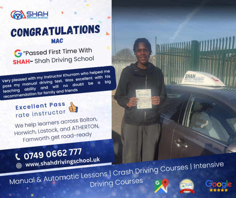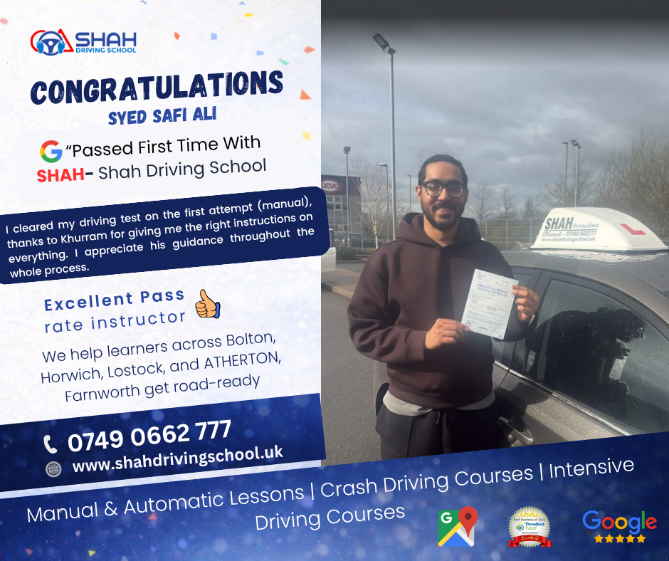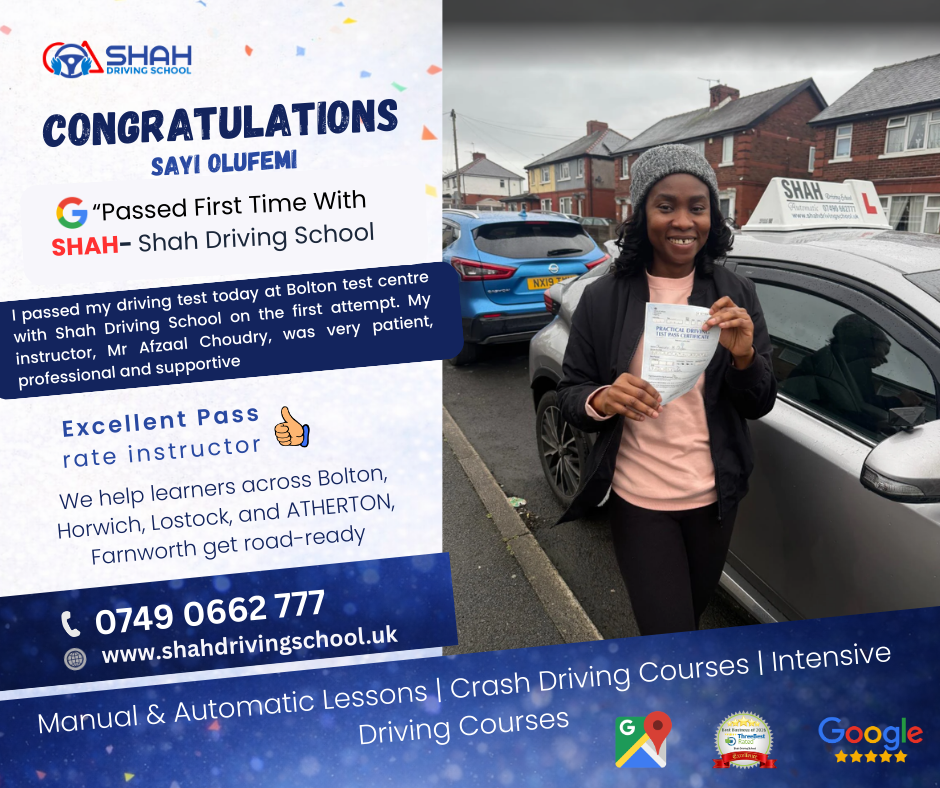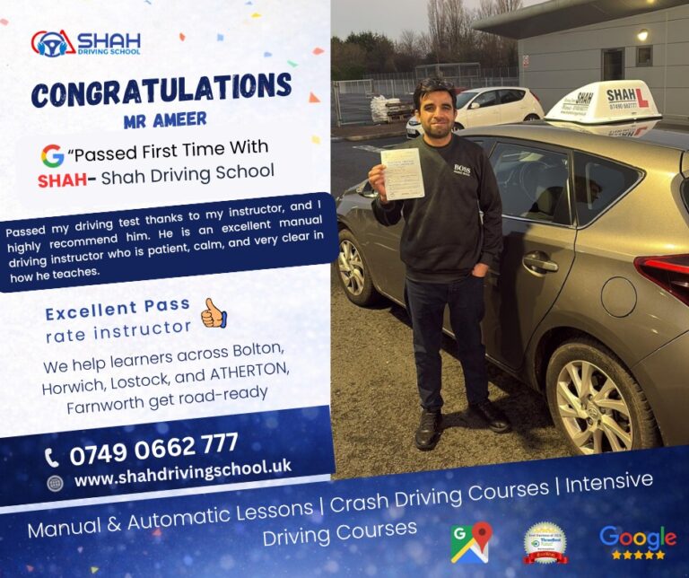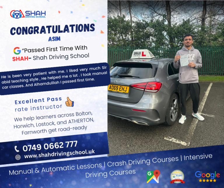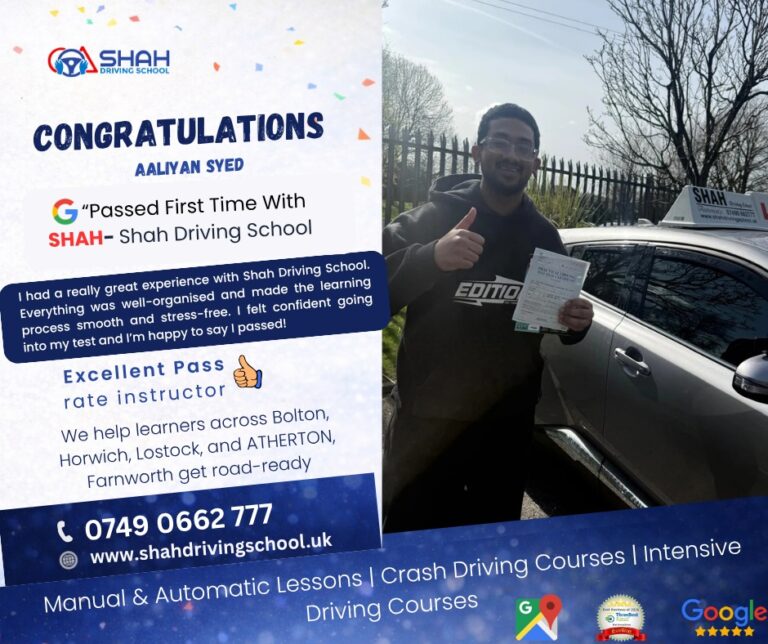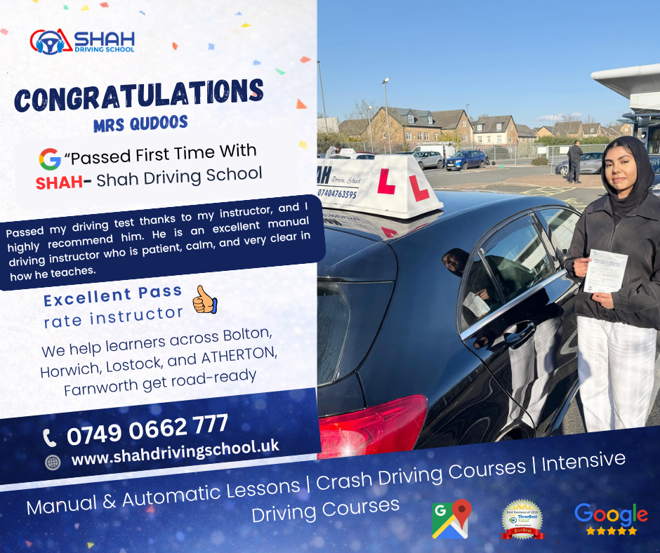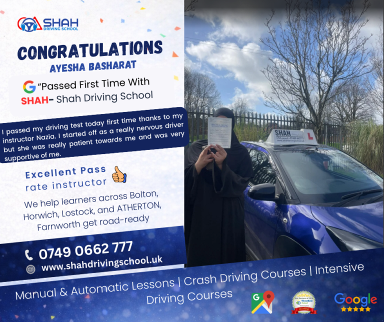 If you’re searching for female driving instructors near me in Bolton, Shah Driving School has highly rated female instructors who create a comfortable and supportive learning environment for all learners.